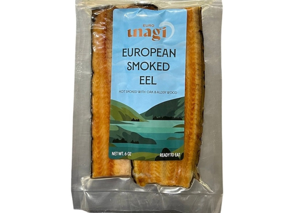 6oz per pack. Smoked eel fillet, skin on.